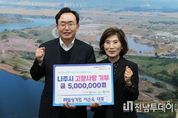 전남투데이 김윤걸 기자 | 전라남도 나주시는 지난 29일 ㈜일성기업 이순옥 대표(오른쪽)가 고향사랑기부제에 500만 원을 기탁했다고 밝혔다. 이순옥 대표는 고향사랑기부제가 시행된 2023년부터 3년 동안 매년 500만 원씩 총 1500만 원을 기부하며 지속적인 사랑 나눔을 실천하고 있다. ㈜일성기업은 나주시 반남면에서 옹벽 블록과 가로수 보호판 등을 생산하는 기업으로 무더운 여름철에는 삼계닭을 기부하는 등 지역 어르신들의 건강을 돌보기 위한 나눔 문화 확산에도 앞장서 왔다. 이순옥 대표는 “꾸준한 나눔을 통해 지역사회와 상생하며 성장하는 기업으로 자리매김하고 싶다”며 “기부금이 지역 발전에 소중히 쓰이기를 바란다”고 밝혔다. 윤병태 나주시장은 “3년 연속 고향사랑기부제에 동참해 나눔의 뜻을 실천하는 이순옥 대표께 깊이 감사드린다”며 “기탁해 주신 기부금은 시민 복리 증진과 나주의 발전을 위해 적극 활용하겠다”고 말했다. 한편 고향사랑기부제는 개인이 자신의 주소지를 제외한 지방자치단체에 기부할 수 있는 제도로 올해부터 개인별 연간 기부 한도가 2천만 원으로 확대됐다.