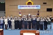 전남투데이 정홍균 기자 | 광주광역시의회는 10월 31일, 조선대학교·전남대학교와 공동으로 모의의회 개원식을 개최했다. 시의회 본회의장에서 개최된 개원식에는 30여 명의 대학생 모의의회 의원들과 정다은 의회운영위원장, 강수정 조선대학교 정치외교학과장 등이 참석했다. 모의의회 의장인 조선대학교 정치외교학과 이가빈 학생은 “정치는 누군가가 대신해 주는 것이 아니라 우리가 직접 참여할 때 비로소 의미가 생긴다”며 “이번 모의시의회가 광주를 이끌어 갈 청년 리더들이 성장하는 출발점이 되길 바란다”고 의지를 다졌다. 격려에 나선 정다은 운영위원장은 “의견이 다를 수 있지만 그 다름을 존중하고 함께 길을 만들어가는 과정이 바로 민주주의”라며 여러분의 아이디어와 용기가 광주의 미래를 밝히는 빛이 되길 바란다”고 응원의 말을 전했다. 이어 조선대학교 정치외교학과 강수정 학과장은 “모의의회는 이름만 ‘모의’일 뿐, 그 안에서 이뤄지는 고민과 대화, 협력은 결코 가상이 아니다”라며 “여러분이 오늘 시작하는 이 경험이 민주주의의 핵심인 대화와 참여를 몸으로 익히는 계기가 되길 바란다”고 격려했다. 대학생