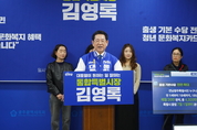 전남투데이 정홍균 기자 | 김영록 민주당 전남광주통합특별시 예비후보는 전남에서 선풍적인 인기를 끌고 있는 출생기본수당과 청년 문화복지카드 혜택을 광주까지 넓혀 시행하겠다고 24일 밝혔다. 김 예비후보는 이날 광주시의회 브리핑룸에서 기자회견을 갖고, 전남광주특별시민의 삶에 더 보탬이 되는 출생·청년 복지 정책을 발표했다. 만 1세부터 18세까지, 아이들에게 18년 간 매월 20만 원씩을 지원하는 출생기본수당을 광주까지 확대, 7월 1일부터 당장 시행하겠다고 밝혔다. 0세에서 1세까지는 국가에서 1,200만 원을 지원한다. 이는 “단순한 현금 지원이 아니라 아이 낳아 키우는 것이 축복이 되는 특별시, 신혼부부의 육아 부담을 함께 나누어 짊어지는 특별시를 만들겠다는 의지”라는 것이 김 예비후보의 말이다. 그는 또 청년들이 부담없이 문화·여가를 즐길 수 있게 지급하던 연 25만 원 상당의 청년 문화복지카드 혜택도 전남광주특별시 전역으로 확대하겠다는 방침을 밝혔다. 특히 내년부터는 이를 50만 원으로 늘리고 혜택 대상도 기존 19세~28세에서 19~34세로 넓혀 적용한다는 약속도 내놨다. 이를 통해 특별시의 젊은 청년들이 문화로 플렉스(FLEX)할 수 있는 여건을 만