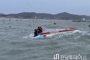전남투데이 김용희 기자 | 완도해양경찰서는 전남 완도군 노화도 인근 해상에서 선박 A호(2.3톤, 양식장관리선, 승선원 1명)가 전복된 상태로 발견돼 수색에 나섰다고 밝혔다. 완도해경에 따르면 같은 날 오후 5시 13분경, 흑일도에서 출항해 보길도 정도리항으로 입항 예정이었던 A호가 입항하지 않고 연락이 두절됐다는 신고가 접수됐다. 완도해경은 즉시 경비함정, 파출소 연안구조정, 구조대를 급파해 해상 수색에 나섰으며, 오후 5시 36분경 노화도 북서방 약 2.8km 인근 해상에서 전복되어 있는 A호를 발견했다. 현재 사고 해역 인근 지역에는 강풍 주의보가 발효되고, 사고 해역에도 강한 바람과 높은 파도가 이어지는 등 기상이 좋지 않은 상황이다. 완도해경은 사고 인근 해역을 중심으로 광범위한 수색 활동을 이어가고 있으며, 전복된 A호 위로 올라가 타격 신호를 실시했으나 내부 반응은 확인되지 않았다. 현재까지 A호 승선원 1명은 실종 상태로, 완도해경은 가용세력을 총 동원해 실종자 수색에 집중하고 있다.