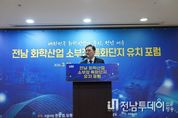 전남투데이 김용희 기자 | 전라남도가 글로벌 공급 과잉과 중동 상황 등 유례없는 복합 위기에 직면한 대한민국 화학산업의 돌파구를 찾기 위해 ‘화학산업 소재·부품·장비(소부장) 특화단지’ 유치에 도정 역량을 총결집하고 있다. 전남도는 20일 국회 의원회관에서 조계원 국회의원을 비롯한 지역 국회의원, 여수시와 공동으로 ‘전남 화학산업 소부장 특화단지 유치 포럼’을 개최했다. 이번 포럼은 산업통상부의 제3기 소부장 특화단지 신규 지정 공모를 앞두고 전남 여수 산단 일원의 지정 필요성을 중앙정부와 정치권에 알리고 국가적 공감대를 형성하기 위해 마련됐다. 이날 포럼에는 지역 국회의원을 비롯해 산업계 전문가, 도민 등 120여 명이 참석해 전남의 소부장 특화단지 유치에 대한 뜨거운 열망을 결집했다. 개회식에선 전남 화학산업의 새로운 이정표가 될 특화단지 유치 의지를 담은 ‘지정 당위성 확산 퍼포먼스’가 펼쳐졌다. 참석자들은 전남 여수가 대한민국 화학산업의 심장이자 공급망 안보의 최적지임을 천명하며, 반드시 지정을 이끌어내겠다는 강력한 결의를 다지는 기념촬영으로 포럼의 문을 열었다. 이어 발표 세션에서는 국내