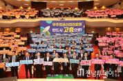 전남투데이 김용희 기자 | 전라남도교육청은 24일 남도소리울림터에서 도교육청 소속 공무원 및 직원 500여 명을 대상으로 ‘사회적 장애인식개선교육’을 실시했다. 이번 교육은 장애에 대한 사회적 편견을 줄이고 서로를 이해하는 조직문화를 확산하기 위해 마련됐으며, 체험과 공감을 통해 감수성을 높이는 연극, 전시 프로그램으로 구성됐다. 연극 ‘우리도 꽃이었다’는 장애 당사자가 직접 무대에 올라 자신 삶과 경험을 이야기하는 형식의 작품이다. 장애를 설명하거나 가르치는 방식이 아니라, 한 사람의 삶과 일상을 통해 관객이 자연스럽게 공감하고 이해하도록 구성된 것이 특징이다. 관객들은 공연을 통해 장애를 지식이나 제도의 대상이 아니라, 함께 일하고 살아가는 이웃의 삶으로 마주하며 서로의 다름을 이해하는 시간을 가졌다. 공연이 끝난 뒤에는 배우들의 삶과 이야기에 공감하며 따뜻한 박수로 화답하기도 했다. 특히 공연 마지막에는 김대중 교육감이 무대에 올라 배우들과 함께 인사를 나누며 장애와 비장애가 어우러지는 사회의 의미를 공유했다. 공연장 로비에서는 장애인 배우이자 서양화 작가로 활동하는 예술가의 작품