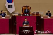 전남투데이 정홍균 기자 | 이재명 대통령은 2일 "이번 추가경정예산안은 위기의 파도로부터 국민의 삶을 지켜줄 방파제이자, 위기 이후 대한민국이 도약할 발판"이라고 밝혔다. 이 대통령은 이날 국회에서 '2026년도 추가경정예산안' 시정연설을 통해 "위기일수록 사회적 약자를 더 두텁게 보호해야 한다는 원칙과, 경제 회생의 골든타임을 놓치지 않겠다는 각오 아래, 총 26조 2000억 원 규모의 추가경정예산안을 마련했다"며 이 같이 말했다. 이 대통령은 "중동 전쟁이 시작된 지 오늘로 34일째로, 최악의 에너지 안보 위협으로 평가받는 이번 사태는 글로벌 경제에 충격을 주고 있고, 언제 끝날지 알 수 없는 불확실성은 경제에 큰 악영향을 미치고 있다"며 "세계 경제가 침체국면에 접어들면서 우리 또한 어렵사리 되살린 경제 성장의 불씨가 사그라들지는 않을까 걱정된다"고 진단했다. 이어 "무엇보다 이 상황이 단기간에 끝나지 않을 수 있다는 점에서 더욱 철저하고도 단단한 대응을 준비해야 한다"며 "우리 정부는 민생경제 전시 상황이라는 엄중한 인식을 갖고 당면한 위기를 타개하기 위해 총력을 기울이고 있다"고 밝혔다.