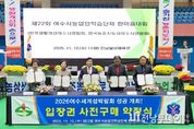 전남투데이 조평훈 기자 | (재)2026여수세계섬박람회조직위원회는 지난 12일 진남실내체육관에서 열린 ‘제22회 여수시농업인학습단체 한마음’ 행사에서 농업인학습단체와 섬박람회 입장권 2,500만 원 규모의 사전 구매약정을 체결했다고 밝혔다. 이번 약정에는 ▲한국농촌지도자전라남도연합회 ▲한국생활개선전라남도연합회 ▲한국농촌지도자여수시연합회 ▲한국생활개선여수시연합회가 함께 참여했다. 이들은 지역 농업의 경쟁력 강화와 공동체 활성화를 위해 활발히 활동하고 있는 주요 농업인 조직이다. 이번 약정은 지난 농우회와 농업인 단체에 이어 세 번째로 농업 관련 단체가 참여한 사례로, 섬박람회 성공 개최를 위한 민간 참여가 점차 확대되고 있다. 농업인학습단체 관계자는 “섬박람회는 해양과 환경이 조화롭게 어우러지는 미래형 박람회로, 지역 농업인들도 적극 참여해 성공 개최에 힘을 보태겠다”고 밝혔다. 정기명 조직위원장은 “전라남도와 여수시 연합회가 함께 뜻을 모아주신 데 대해 깊이 감사드린다”며 “농업인 단체의 적극적인 참여가 박람회 성공을 위한 든든한 원동력이 될 것”이라고 말했다. 한편, 20