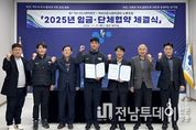 전남투데이 조평훈 기자 | 여수시도시관리공단은 올해 9월 단체협약 체결에 이어, 지난 27일 공단 회의실에서 교섭대표 노동조합과 ‘2025년 임금협약’ 체결식을 개최했다. 이날 협약식은 이사장 및 노동조합 위원장 인사말, 협약서 서명, 기념 촬영 순으로 진행됐다. 임금협약의 주요 내용으로는 총인건비 3.0% 인상과 환경미화원 평가급 인상 등 총 7건의 합의 사항이 포함됐으며, 이 가운데 환경미화원 평가급 인상은 당해 연도 공단 경영평가 등급 결과와 연계하여 지급하도록 함으로써, 조직 전반의 책임성과 중장기적으로 성과 중심 조직운영 기반을 강화하는데 기여할 것으로 평가된다. 공단은 관련법에 따라 협약서를 고용노동청에 신고할 계획이며, 협약 내용은 2025년 1월 1일 부로 소급 적용된다. 송병구 이사장은 “이번 협약은 노사 간 신뢰와 소통의 결실”이라며, “앞으로도 현장 중심의 소통을 통해 노사가 같은 방향을 바라보는 공단의 내일을 준비해 나가겠다”라고 말했다. 정한샘 교섭대표 노동조합 위원장도 “끝까지 성실하게 논의해 준 사측에 감사드린다”며, “노사가 서로 신뢰하는 동반자로서 한 단계