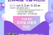 전남투데이 조평훈 기자 | 여수시가 오는 3월 31일까지 ‘온라인 설문조사 신규 패널 가입 이벤트’를 실시한다고 밝혔다. 시에 따르면 시정 정책 전반에 시민의 의견 수렴하기 위해 온라인 설문조사를 추진 중이며 ‘온라인 설문조사 패널’에 가입하면 각종 설문조사에 참여할 수 있다. 이벤트 기간은 오는 3월 31일까지이며 여수시민이면 누구나 가입 가능하다. 패널 가입은 이벤트 기간 이후에도 연중 가입할 수 있다. 가입 방법은 아래 QR코드를 통해 접속하거나 여수시 온라인 설문조사 누리집에 접속한 뒤 우측 상단 ‘패널 가입하기’를 클릭해 휴대폰 인증과 인적사항을 입력 절차를 거치면 된다. 여수시는 이번 이벤트를 통해 시정에 시민 참여를 확대하고 다양한 의견을 정책에 반영해 시민 중심의 정책을 추진해 나갈 계획이다. 시 관계자는 “시민 한 분 한 분의 의견이 모여 여수의 미래를 만들어 간다”며 “많은 시민들께서 온라인 설문조사 패널로 참여해 소중한 의견을 나눠주시길 바란다”고 말했다.