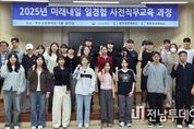 전남투데이 손영욱 기자 | 목포상공회의소는 고용노동부에서 주관하는 “2025년 미래내일 일경험 지원사업 사전직무교육과정” 개강식을 10월 15일 오후 13시 목포상공회의소 3층 대회의실에서 개최했다. 미래내일일경험 지원사업은 청년이 필요로 하는 다양한 일경험을 제공하며 직무탐색, 직무역량 강화 등을 지원함으로써 청년의 원활한 노동시장의 진입과 성장기반을 마련할 수 있도록 지원하는 사업으로 현재까지 총 210여명의 청년들이 사업에 참여했다. '2025년 미래내일 일경험 지원사업 사전직무교육과정'은 총 25명의 청년이 참여하여 오는 10월 15일부터 10월 17일까지 3일간 사전직무교육(20시간) 및 멘토링이 진행된다. 이후, 10월 20일부터 희망하는 기업에서 8주~12주간 인턴을 진행하게 된다. 이 사업에는 근로복지공단 목포지사, MC에너지㈜, 다도해해상국립공원 서부사무소, 목포축구센터, 목포문화방송, ㈜목포해상케이블카, 신안군산림조합, 씨월드고속훼리㈜, ㈜케이씨, 전남지체장애인협회 등 12개 기업이 참여할 예정이다. 목포상공회의소 정현택 회장은 “이번 직무교육이 청년