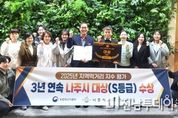 전남투데이 김윤걸 기자 | 전남 나주시는 지난 9일 열린 ‘2025 전국 지역먹거리 지수 평가’에서 3년 연속으로 대상을 받았다고 밝혔다. 나주시는 2023년 첫 대상 수상 이후 3년 연속 대상을 받으며 지속 가능한 먹거리 정책의 성과와 실행력을 인정받았다. 농림축산식품부가 주최하고 한국농수산식품유통공사(aT)가 주관하는 지역 먹거리지수 평가는 전국 지자체별 지역 농산물 생산·유통·소비 활성화를 위한 노력과 먹거리 정책 전반에 대한 추진 사항을 지역 먹거리 지수로 계량 평가해 공표하는 제도이다. 이번 평가는 먹거리 거버넌스 활성화, 안전하고 환경적인 지역 먹거리 생산, 지역 먹거리의 지역 내 우선 소비, 지역농산물 가치 확산, 먹거리 지속 가능성 제고 등 5개 평가 과제를 기준으로 진행됐다. 나주시는 5개 평가 과제, 14개 평가지표에서 고르게 높은 점수를 받은 것으로 알려졌다. 특히 지자체장의 추진 의지, 농가 조직화 교육, 민간 영역 로컬푸드 공급, 지역농산물 생산자와 소비자 간 소통 활동, 직거래 장터 운영, 먹거리 유통과정 전반에서 탄소 감축을 위한 정책 지원 분야에서 우수한 성