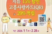 전남투데이 조평훈 기자 | 고흥군은 설 명절을 맞아 군민들의 장보기 부담을 덜고 전통시장과 골목상권 소비를 촉진하기 위해 고흥사랑상품권 이용을 적극 당부했다. 군은 지난 1월 1일부터 오는 2월 28일까지 ‘새해맞이 고흥사랑상품권 특별할인 행사’를 진행 중이다. 지류형 상품권은 15% 할인된 가격으로 판매하고 있으며, 카드·모바일형 고흥사랑상품권 결제 시 20% 적립 혜택을 제공하고 있다. 특히 20% 적립 혜택은 상품권 도입 이후 처음 시행되는 역대 최대 규모로, 명절을 준비하는 군민들에게 파격적인 혜택이 될 것으로 보인다. 군은 이번 할인행사를 통해 명절 소비가 대형 유통업체나 지역 외로 유출되는 것을 막고 전통시장과 관내 소상공인 매출 증대에 직접적인 도움이 되길 기대하고 있다. 카드·모바일형 상품권은 ‘지역상품권 착(chak)’ 앱을 통해 1인당 최대 50만 원까지 충전할 수 있으며, 결제 즉시 20%가 캐시백으로 쌓여 군민들이 체감하는 혜택이 매우 크다. 지류형 상품권은 관내 45개 금융기관에서 월 50만 원 한도로 구매할 수 있다. 고흥사랑상품권은 식
