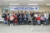 전남투데이 김길룡 기자 | 전남 함평군이 미래 농업 발전과 경쟁력을 강화키 위해 지역 농업인들과 머리를 맞댔다. 함평군은 지난 15일 (사)한국후계농업경영인함평군연합회과 (사)한국여성농업인함평군연합회와 간담회를 개최했다고 16일 밝혔다. 간담회는 농업 현장의 목소리를 군정에 직접 반영해 군 농정의 실효성을 높이고, 지역 농업의 지속 가능한 발전과 경쟁력 강화를 위한 소통의 장으로 마련됐다. 간담회에는 이상익 함평군수와 심재식 한농연 회장. 이은정 한여농 회장 등 50여 명이 참석해 ▲기능성 농산물 생산 확대 ▲저탄소 농업 활성화 ▲농가 교육 및 역량 강화 ▲농업 환경 개선 등 다양한 현안을 군에 전했다. 군은 이번 간담회에서 제출된 의견을 검토해 향후 농정에 적극 반영할 계획이며, 앞으로도 농업인과의 지속적인 소통을 통해 현장 중심의 맞춤형 정책을 추진해 나갈 방침이다. 이상익 함평군수는 “농업인들과 직접 소통하며 현장의 애로사항을 청취할 수 있어 뜻깊다”며, “현재 농업이 기계화와 세계화라는 대전환기를 맞이하고 있는 만큼, 오늘 간담회에서 제시된 소중한 의견을 정책에 적극 반영해 농업