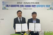 전남투데이 박동운 기자 | 강진군은 전라남도건축사회와 집중호우 등 자연재난으로 주택 피해를 입은 군민의 신속한 피해 복구 및 주거 안정을 도모하기 위해 상호 협력 체계를 구축한다고 2일 밝혔다. 강진군은 지난 1일 이경일 전남건축사회장이 참석한 가운데 이 같은 내용을 골자로 하는 ‘재난피해 주택 신축 지원을 위한 업무협약’을 체결했다. 이번 협약에 따라 양 기관은 재난 발생 시 피해주민의 실질적인 부담 경감과 조속한 일상 회복을 위해 ▲건축 설계 및 감리비 감면 ▲건축 인허가 행정절차 신속 지원 ▲전문 건축사 참여 체계 구축 등 3대 핵심 지원체계를 가동한다. 세부 이행계획으로, 전남건축사회는 소속 건축사가 재난피해 주택의 신축에 따른 설계 및 감리를 수행할 경우 해당 용역 비용의 최대 50%를 감면해 피해 군민의 경제적 부담을 완화한다. 아울러, 관할 지역 내 재난 지원 전문 건축사 인력풀을 구성·관리하고 관련 명부를 강진군에 제공하여 피해 대상자와의 즉각적인 연계 체계를 구축한다. 이에 발맞춰 강진군은 피해 주택 신축과 관련된 건축법상 인허가 접수 때 해당 민원 서류를 최우선으로