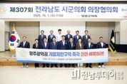 전남투데이 이현승 기자 | 전라남도 시군 의회 의장협의회는 지난 10월 1일 영광군의회에서 개최된 제307회 정례회의에서“광주광역권 개발제한구역 전면 해제 촉구 건의안”을 만장일치로 채택했다. 이번 건의문은 장성군의회 심민섭 의장이 발의한 것으로 광주광역권을 둘러싼 4개 시 군(장성, 담양, 화순, 나주)에 수십년간 과도한 개발제한구역을 지정하면서 수도권에는 과밀억제를 명분으로 개발제한구역 제도를 더욱 엄격히 적용해야 하나, 오히려 수도권을 중심으로 해제를 해주면서도 비수도권인 광주광역권에는 여전히 경직되고 일률적인 규제를 강요하는 것은 명백한 지역 역차별이자 지방시대 국가균형발전 정책에도 역행하는 조치라며 정부에 전면 해제를 강력히 요구했다. 건의문에는 ▲ 광주광역권 개발제한구역 전면 해제 ▲ 지역발전에 대한 사항을 지방정부가 결정할 수 있도록 모든 권한을 자치단체에 이양할 것을 촉구하는 내용을 담고 있으며, 건의문을 발의한 심민섭 의장은“광주광역권 개발제한구역은 시대적 역할을 다한 만큼, 지역간 균형발전을 실현하고 나아가 국가 전체의 지속가능한 발전을 도모하기 위해서 개발제한구역 전면 해제가 반드시 필요하다.”고 강조했