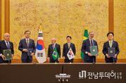 전남투데이 정홍균 기자 | 이재명 대통령과 루이스 이나시우 룰라 다시우바 브라질 대통령은 23일 정상회담을 갖고, 양국 관계를 '전략적 동반자 관계'로 격상시키기로 하고, 이를 이행하기 위한 '한-브라질 4개년 행동계획'을 채택했다. 양국 정상은 이번에 채택한 행동계획을 정치, 경제, 실질 협력, 민간 교류 등 포괄적 분야에서 양국 관계를 이끌어 갈 로드맵으로 삼기로 했다. 이 대통령은 이날 청와대에서 룰라 대통령과 정상회담을 가진 직후 공동언론발표를 통해 "오늘은 양국 관계의 새로운 도약을 만들어 낸 역사적인 날로 기록될 것"이라며 양 정상 간 논의 결과를 공개했다. 이 대통령은 "한국과 브라질은 지구 반대편에 있다는 지리적 한계를 뛰어넘어 상호보완적인 경제 구조를 바탕으로 긴밀히 협력해 왔다"면서 "양국 간 교역액은 최근 5년간 매년 100억 달러를 상회하고 있고, 우주·바이오·제약·문화산업 같은 미래 유망분야로 양국 협력이 점차 확장하고 있다"고 했다. 이어 "오늘 채택된 '한-브라질 4개년 행동계획'은 정치, 경제, 실질협력, 민간교류 등 포괄적 분야에서 양국 관계를 이끌어 갈 로드맵으