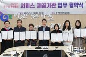 전남투데이 김경민 기자 | 광주 동구는 지난 23일 구청에서 동구지역자활센터 등 11개 서비스 제공기관과 업무협약을 체결하고, 2026년 ‘동구형 통합돌봄’ 사업을 본격 추진한다고 밝혔다. 이번 협약에는 ▲광주동구지역자활센터 ▲광주광역시 안심돌봄센터 ▲광주재가노인복지협회 ▲(사)한국노인장기요양기관협회 광주지부 ▲광주의료복지사회적협동조합 ▲(사)대한물리치료사협회 광주광역시회 ▲(사)대한작업치료사협회 광주광역시·전라남도회 ▲(사)대한치과위생사협회 광주·전남회 ▲집수리공동체 ▲예술유통협동조합 ▲사회복지법인 영화복지회 등 총 11개 기관이 참여했다. 이날 협약에 따라 각 기관은 통합돌봄 서비스 제공기관으로서 역할과 책임을 바탕으로, ‘광주다움 통합돌봄’ 7대 핵심 서비스를 공동으로 수행하게 된다. 주요 서비스는 ▲일상생활 지원 ▲식사 지원 ▲병원·외출 동행 ▲건강관리 ▲안전 확인 ▲주거 편의 지원 ▲일시 보호 등으로, 돌봄이 필요한 주민들이 지역사회 안에서 필요한 지원을 지속적으로 제공받을 수 있도록 설계됐다. 동구는 이번 협약 기관들과 함께 동구 특화사업인 ‘들랑날랑 커뮤니티센터’ 운영에도 힘을 모을 계