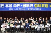 전남투데이 김경민 기자 | 광주 북구의회는 지난 18일, 지역사회 발전에 헌신한 유공자들의 노고를 기리기 위해 ‘2025년도 4분기 정례표창 수여식’을 개최했다. 이번 수여식은 투철한 봉사 정신으로 지역 발전과 주민 화합에 앞장선 구민 27명과 공무원 11명을 선정해 노고를 격려하고 감사의 마음을 전하고자 마련됐다. 행사는 색소포니스트의 식전 공연을 시작으로 국민의례, 표창패 수여, 축하 인사 및 기념촬영 순으로 진행됐다. 특히 이날 행사에서는 ‘어린이·청소년 모의의회 체험 수기 공모전’ 시상식도 함께 열려 의미를 더했다. 공모전에서 우수한 성적을 거둔 곡성중앙초등학교와 지산중학교 학생 7명에게 최우수상(3명), 우수상(2명), 장려상(2명) 상장이 수여됐다. 최무송 의장은 “항상 지역 곳곳에서 묵묵히 봉사하며 살기 좋은 북구를 만들기 위해 애써주신 수상자분들께 깊이 감사드린다”며 “북구의회도 수상자 여러분들의 땀과 헌신에 보답할 수 있도록 구민을 위한 의정활동에 최선을 다하겠다“고 전했다.