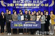 전남투데이 김경민 기자 | 광주 광산구는 지난 26일 시민이 체감하는 우수한 성과와 창의적·혁신적 정책 역량을 인정받아 ‘제17회 광주·전남 지방자치경영대상’ 종합대상을 받았다. 광산구는 지난 2월 종합대상에 이어 연속 수상에 성공하며 광산구 민선 최초의 기록을 세웠다. ‘지방자치경영대상’은 광남일보가 주최해 지역민의 삶의 질 향상과 지역 경쟁력 향상을 도모한 지자체 등에 수여하는 상이다. 광산구는 △행정서비스 △창의혁신 △문화관광 △보건복지 △경제활성화와 일자리 창출 △안전환경 △인적자원 육성 등 7개 모든 분야에서 높은 평가를 받으며 영예를 안았다. 광산구는 △시민의 목소리를 먼저 찾아가 듣고 구정에 반영한 ‘찾아가는 경청 구청장실’ △주민이 주체적으로 마을의 미래를 설계·실행하는 ‘동 미래발전계획’ △세계 최초 ‘녹서’ 단계부터 상향식 사회적 대화를 기반으로 한 ‘지속가능일자리 사회적대화’ 등 민주주의의 가치를 실천한 혁신 정책이 큰 주목을 받았다. 또한 △전국 최초 케어홈센터 및 중간집 운영으로 주거기반 돌봄사업의 혁신성을 입증한 ‘광산형 살던집 프로젝트’ △23만 명 시민이 열